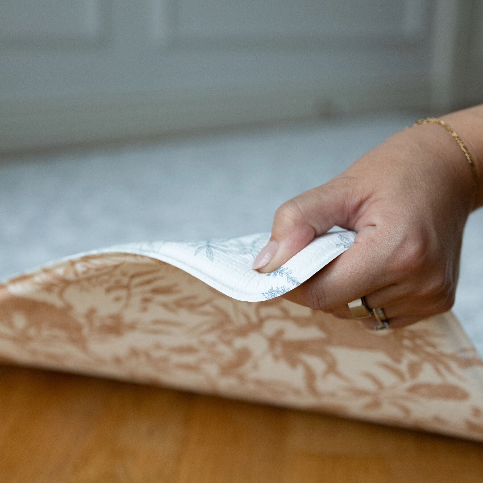 All our mats have two beautiful designs, inspired by the beautiful Nordic nature. On the back of Woodland Wonders is Secret Garden .